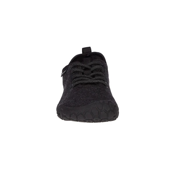 Das besteht nämlich aus Wollfilz. Hier kommt ein Mix aus Schurwolle und synthetischen Fasern zum Einsatz. Dieser Mix sorgt für ein wunderbar natürliches Tragegefühl, für einen Barfußschuh ideal, denn dieser sorgt für ein angenehm natürliches Laufgefühl. Die flach gehaltene Gummi-Profilsohle sorgt in ebenem Gelände für Halt, durch die sehr weiche Torsionssteife wird die Abrollbewegung deines Fußes optimal unterstützt.