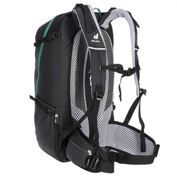 Das belüftete Tragesystem sitzt dabei wie angegossen. Wackeln ist für den Trans Alpine 32 EL ein Fremdwort. Dafür sorgen die beiden Aluschienen im Rucksack, die du an die Krümmung deines Rückens anpassen kannst. Die beweglich aufgehängten Schulterträger lassen dir die volle Kontrolle am Lenker, der breite Hüftgurt bringt die nötige Festigkeit. Der breite Luftkanal am Rücken garantiert ein angenehmes Klima.