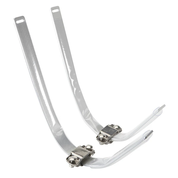 Das Ovalbügel-Paar besteht aus stabilem Stahl, ist zum Schutz des Bootes mit Kunststoff ummantelt. Das Boot wird schräg liegend in den Bügeln fixiert.