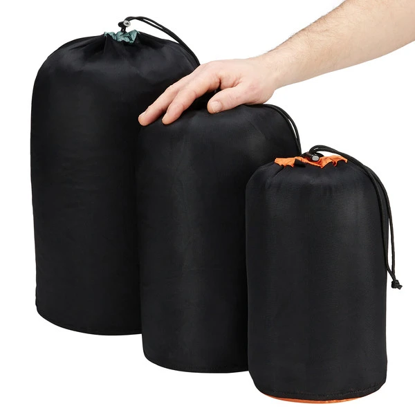 Aber auch anderes Ausrüstungszeug lässt sich natürlich in den Stuffbags transportieren. Das Netzgewebe gibt dabei den Blick auf den Inhalt frei. Geschlossen werden die Packbeutel mit Tunnelzug und Tanka. Sie sind aus recyceltem Polyester.