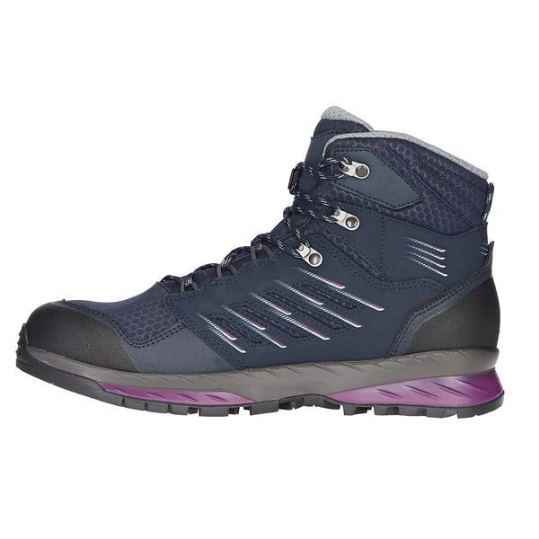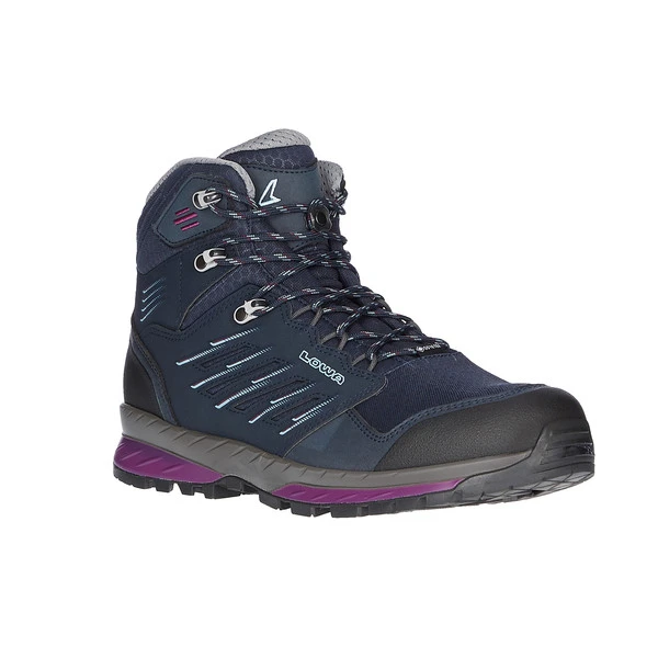 Mit dem Trek Evo GTX Mid Ws hat Lowa einen verhältnismäßig leichten Mid-Cut Schuh geschaffen, der für sportliches Hiking entwickelt wurde. Das sehr leichte, aber dennoch robuste Synthetikmaterial sorgt für ausgezeichnete Atmungsaktivität. Die sehr weiche Sohle sorgt gleichzeitig für viel Komfort und trägt mit ihrem groben Profil zu gutem Halt bei, auch in schwierigerem Gelände. Darüber hinaus ist der Schuh, dank der verwendeten Gore-Tex Membran absolut wasserdicht, du bekommst also auch bei Regen, Schlamm und Tau keine nassen Füße. Deine Tour kannst du also in vollen Zügen genießen, egal bei welchem Wetter!