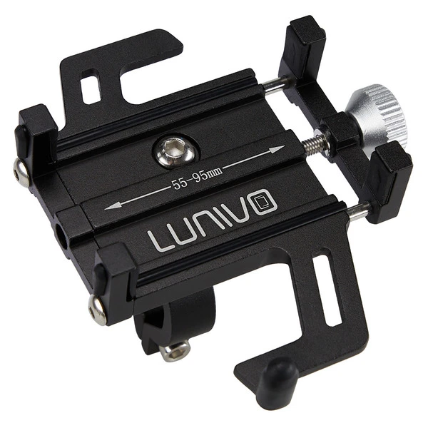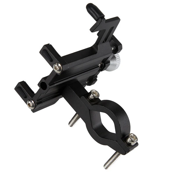Wertiger Handyhalter aus Aluminium, gemacht für Smartphones bis zu 6,5 Zoll. Die Breite des Halters ist mit einer komfortablen Rändelschraube von 55 bis 95 mm einstellbar.