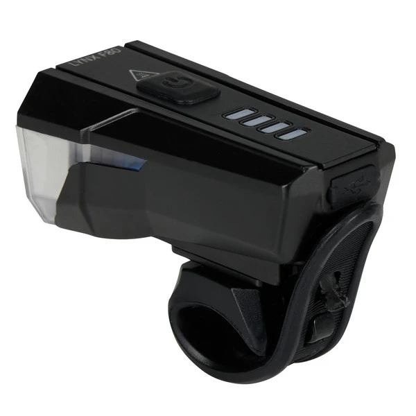 Der Lynx F80 Frontscheinwerfer liefert dir eine Lichtausbeute bis 80 Lux. Geht es hauptsächlich ums Gesehen-Werden im städtischen Bereich (und nicht so sehr ums wirkungsvolle Weg-Ausleuchten), lässt sich die Intensität der Frontlampe auch herunterregeln. Bis zu 20 Stunden Leuchtdauer stehen dir dann zur Verfügung. Bei Wegen ohne viel Straßenbeleuchtung sorgt ein großer Lichtkegel mit 80 Lux und bis 30 Meter dafür, dass du sicher vorankommst.