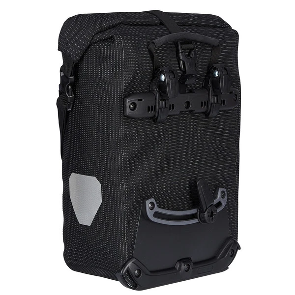 Die kompakte Packtasche wird mit Rollverschluss und Steckschnalle geschlossen und trotzt Regen und Nässe. Ausgestattet ist sie mit Innentasche, abnehmbarem Schultertragegurt und Kunststoff-Kantenschutz. Die kleinere Version der klassischen Ortlieb-Packtasche ist sowohl fürs Vorderrad als auch für den hinteren Gepäckträger nutzbar.