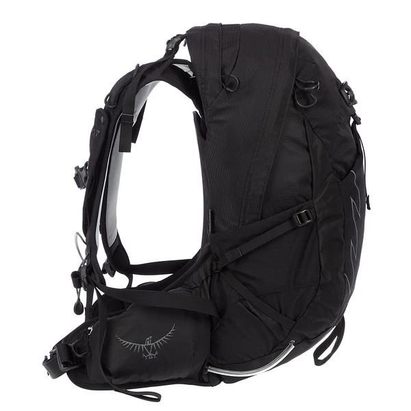 Die Talon/Tempest-Reihe wurde von Osprey mit dem modernen AirScape-Rückensystem ausgestattet. Die feste HDPE-Rückenplatte ist spritzgegossen und bleibt auch bei hoher Traglast verwindungssteif. Dabei passt sich das Material immer noch dem Rücken an. Der Meshbezug sorgt für eine sehr gute Belüftung des Rückens.