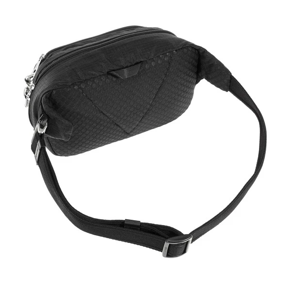 Kleine und flache Hüfttasche, die jede Menge Pacsafe-Sicherheitsmerkmale mitbringt, um deine Wertsachen wirkungsvoll vor Langfingern zu sichern!