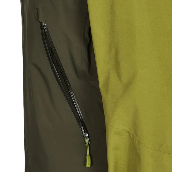 Geht es in die Vollen, kannst du dank der RV-Unterarmbelüftungen für wohltuende Abkühlung sorgen. Dagegen bietet dir die im Volumen vorne und hinten regulierbare Kapuze optimalen Schutz bei stürmischem Regenwetter. Obendrein kann sie bei Klettereinheiten eingerollt und per Klettverschluss fixiert werden. Die beiden RV-Taschen sind bewusst höher angebracht, sodass du bequem einen Becken- oder Klettergurt tragen kannst. Und damit auch an den Ärmel und am Saum Nässe und Wind abgehalten werden, lassen sich diese in der Weite regulieren.