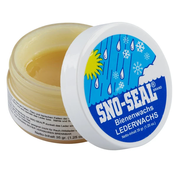 Schützt vor Wasser, Sonne, Salz & Schmutz. Lang anhaltende Wirkung. Sno-Seal ist ein sehr wirksames Pflegemittel auf Bienenwachs-Basis.